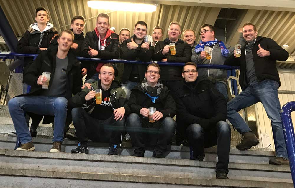 Nachdem jeder Burgerhunger vorerst gestillt war, ging es mit vier PKWs (denn Zacharias kommt zu spät) Richtung Märkischer Kreis. Am Seilersee angekommen wurde zunächst noch ein Bier auf dem Parkplatz getrunken, bevor sich die Gruppe zum ausverkauften Eisstadion begab. Nach kurzem Warten am Einlass positionierten sich die motivierten Jungschützen mit gutem Blick aufs Eis.