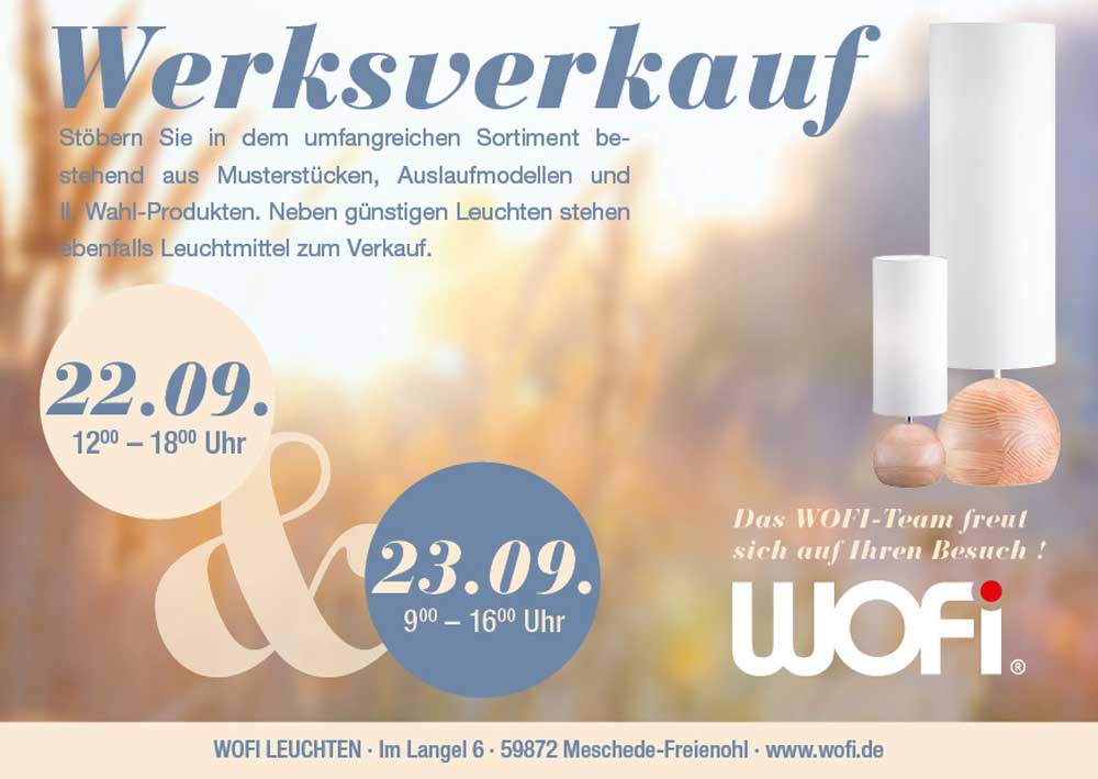 WoFi-Werksverkauf am 22. und 23.09.2017