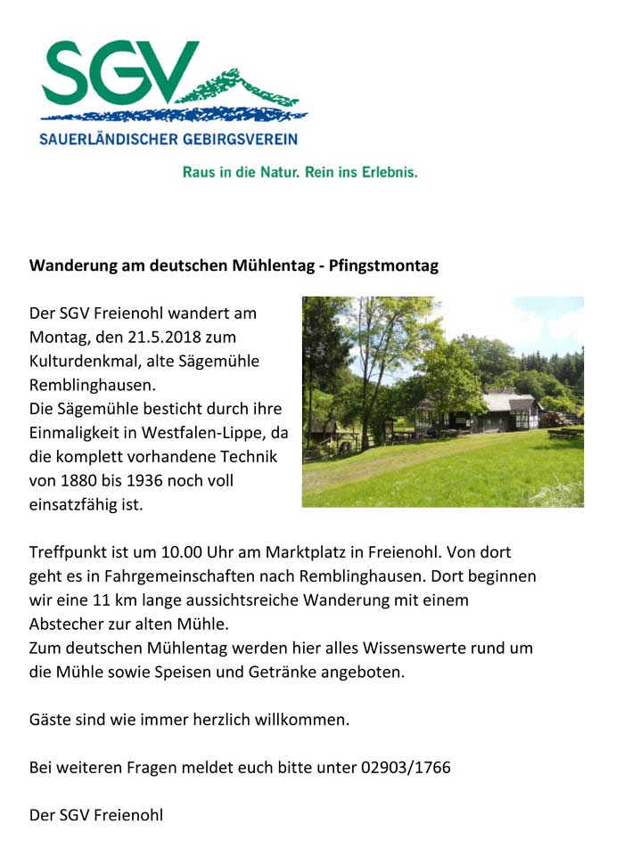SGV-Pfingstwanderung am Mühlentag.