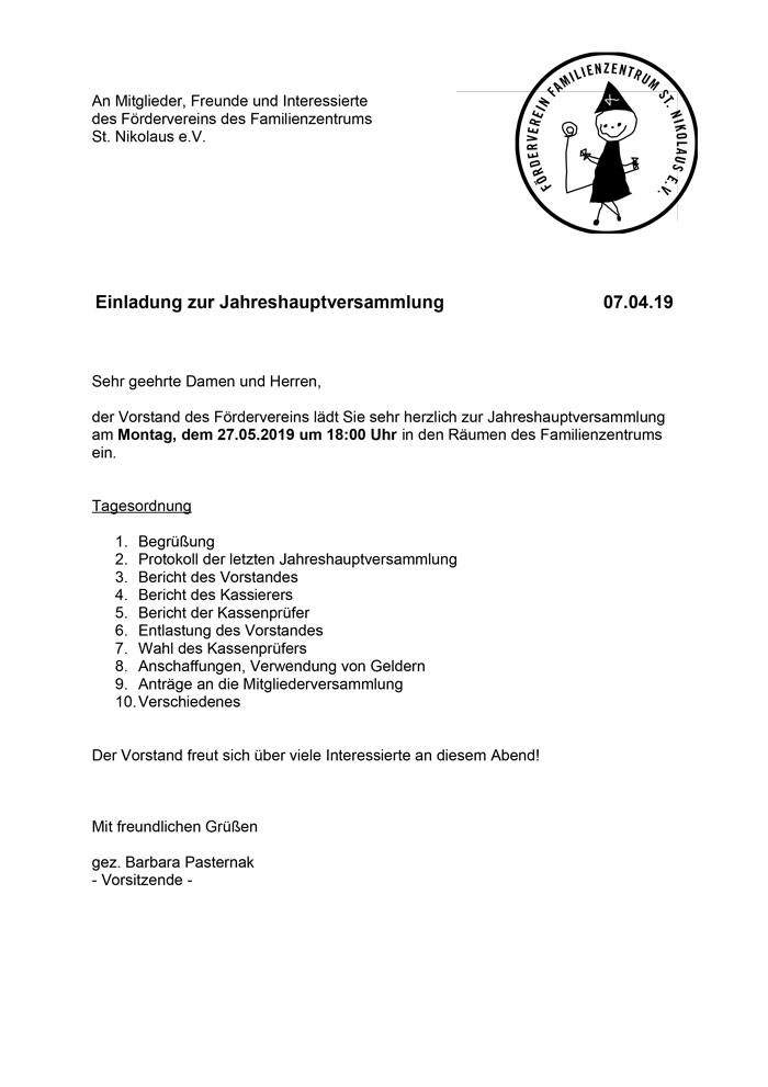 Jahreshauptversammlung des Fördervereins des Familienzentrums St. Nikolaus e.V.
