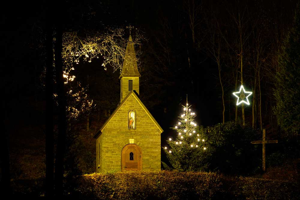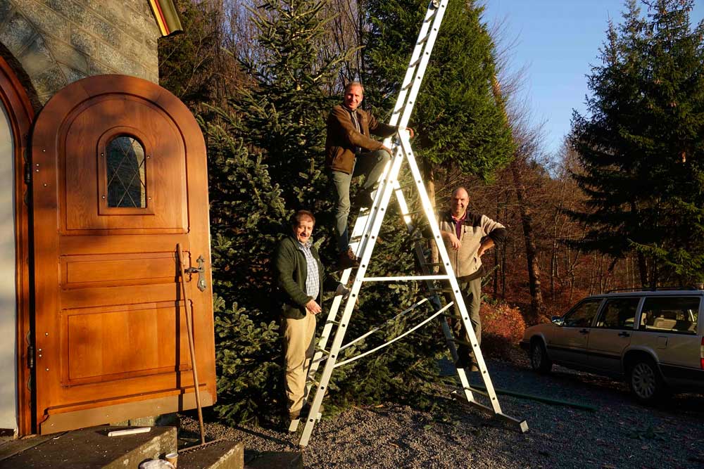 Baum und Stern leuchten an der Küppelkapelle. Vielen Dank an Johannes Baulmann, Karl-Willi Vorderwülbecke und Klaus Pöttgen, die uns dabei unterstützt haben.