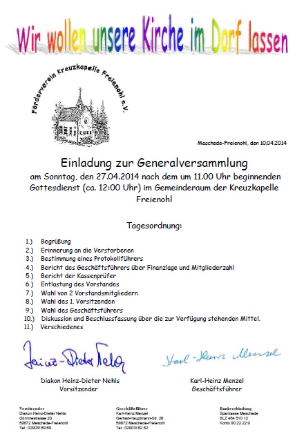 Einladung Generalversammlung Förderverein Kreuzkapelle Freienohl e.V.